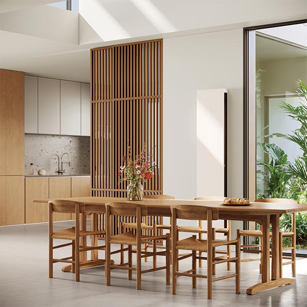 Vertilina Hybrid to harmonijne połączenie wydajności, energooszczędności i smukłego, pionowego designu. To nowoczesny konwektor hybrydowy zaprojektowany do pracy przy niskich temperaturach zasilania, w systemach z pompami ciepła oraz kotłami kondensacyjnymi. Dzięki dynamicznemu wymiennikowi ciepła i technologii Dynamic Boost Hybrid zapewnia stabilną i efektywną pracę zarówno w trybie ogrzewania, jak i chłodzenia bez kondensacji.