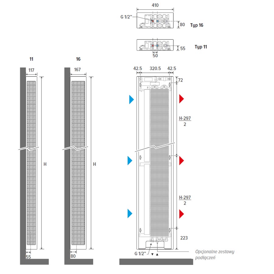 Pionowy grzejnik do ogrzewania i chłodzenia